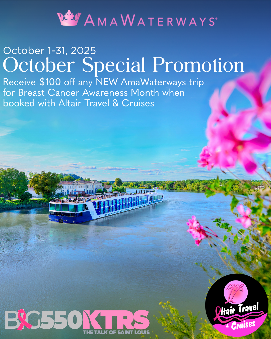 Receive $100 off any NEW AmaWaterways trip for Breast Cancer Awareness Month with Altair Travel & Cruises.